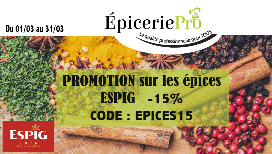 -15 % du 1er au 31 Mars avec le code : EPICES15